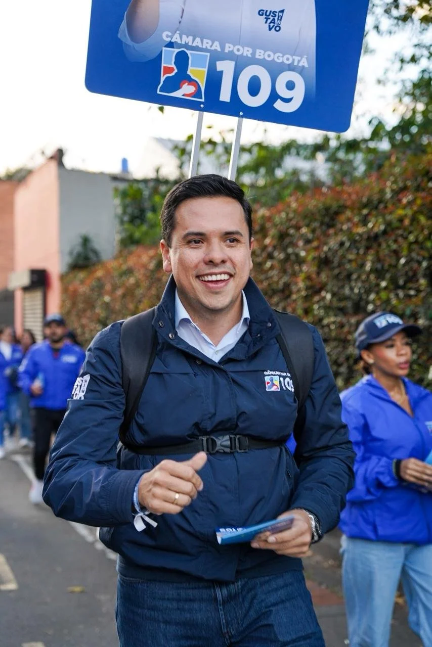 Gustavo es de los que se toma un tinto con el tendero y después se sienta a dialogar con ministros, siempre con el mismo respeto. Es papá de dos niñas de 2 y 4 años, y cuando habla de seguridad piensa en ellas: en que puedan ir tranquilas a la universidad, en que crezcan en una ciudad donde no tengan miedo.